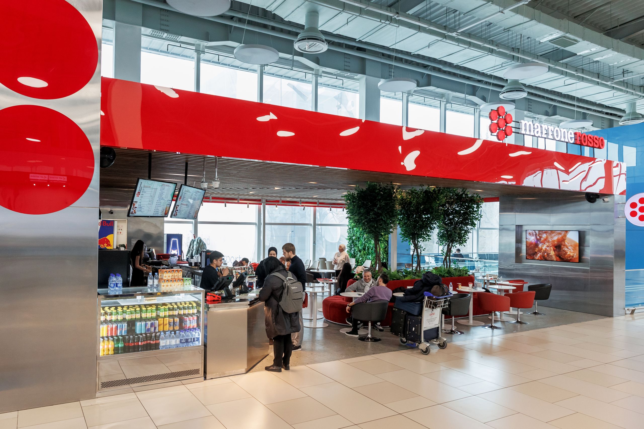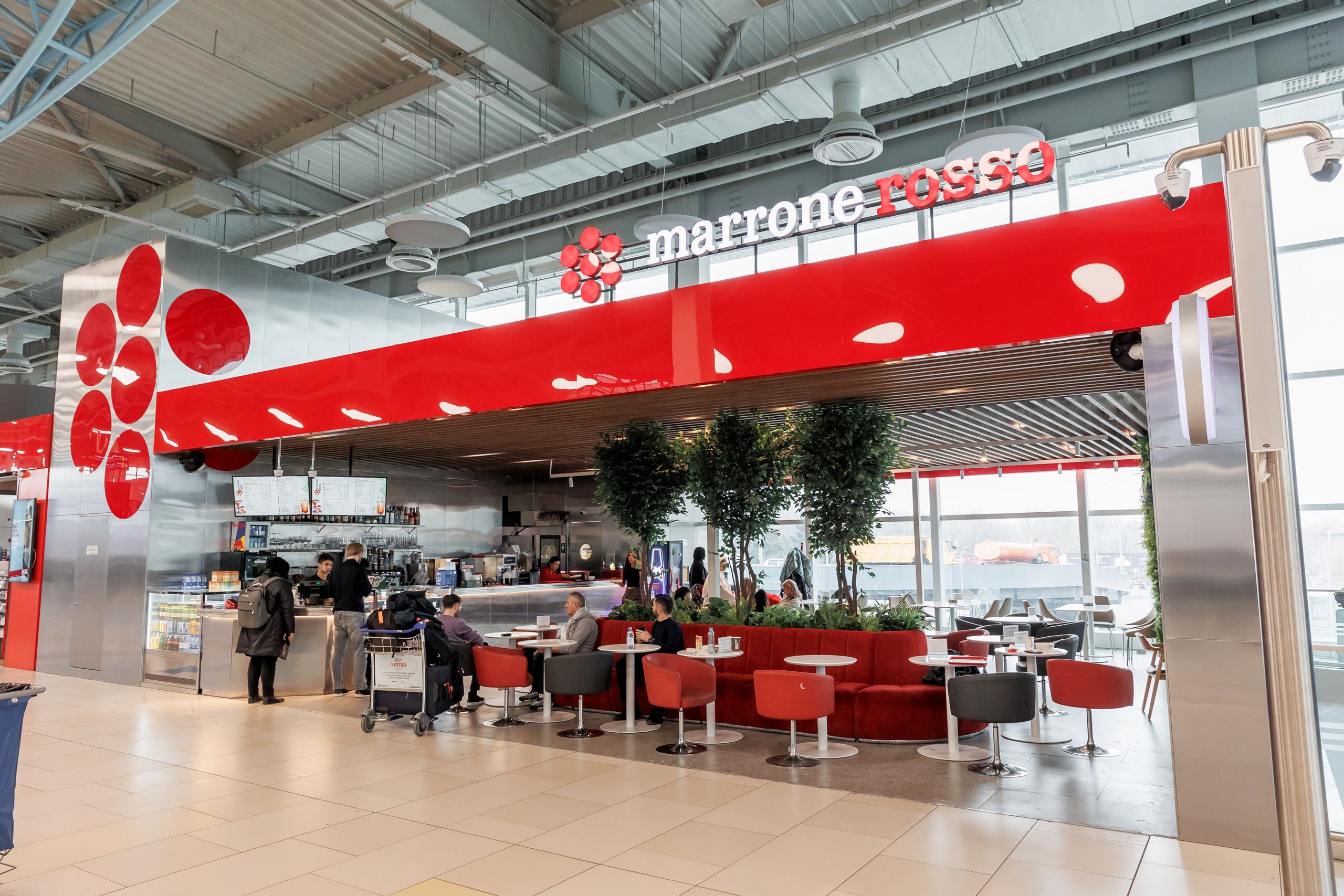 Marrone Rosso – a convenient spot for a light lunch, coffee break, or meeting, offering coffee, tea, and desserts throughout the day