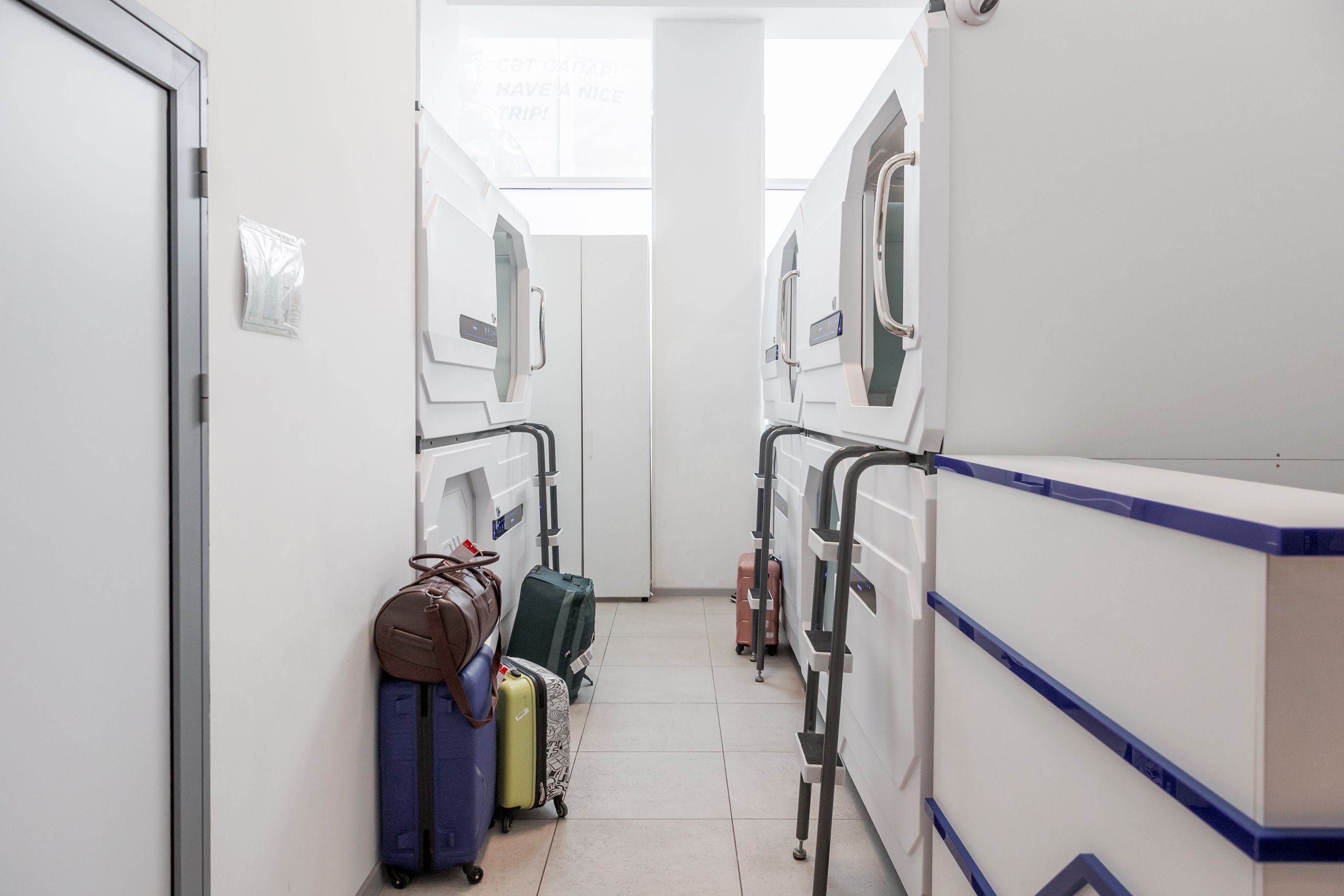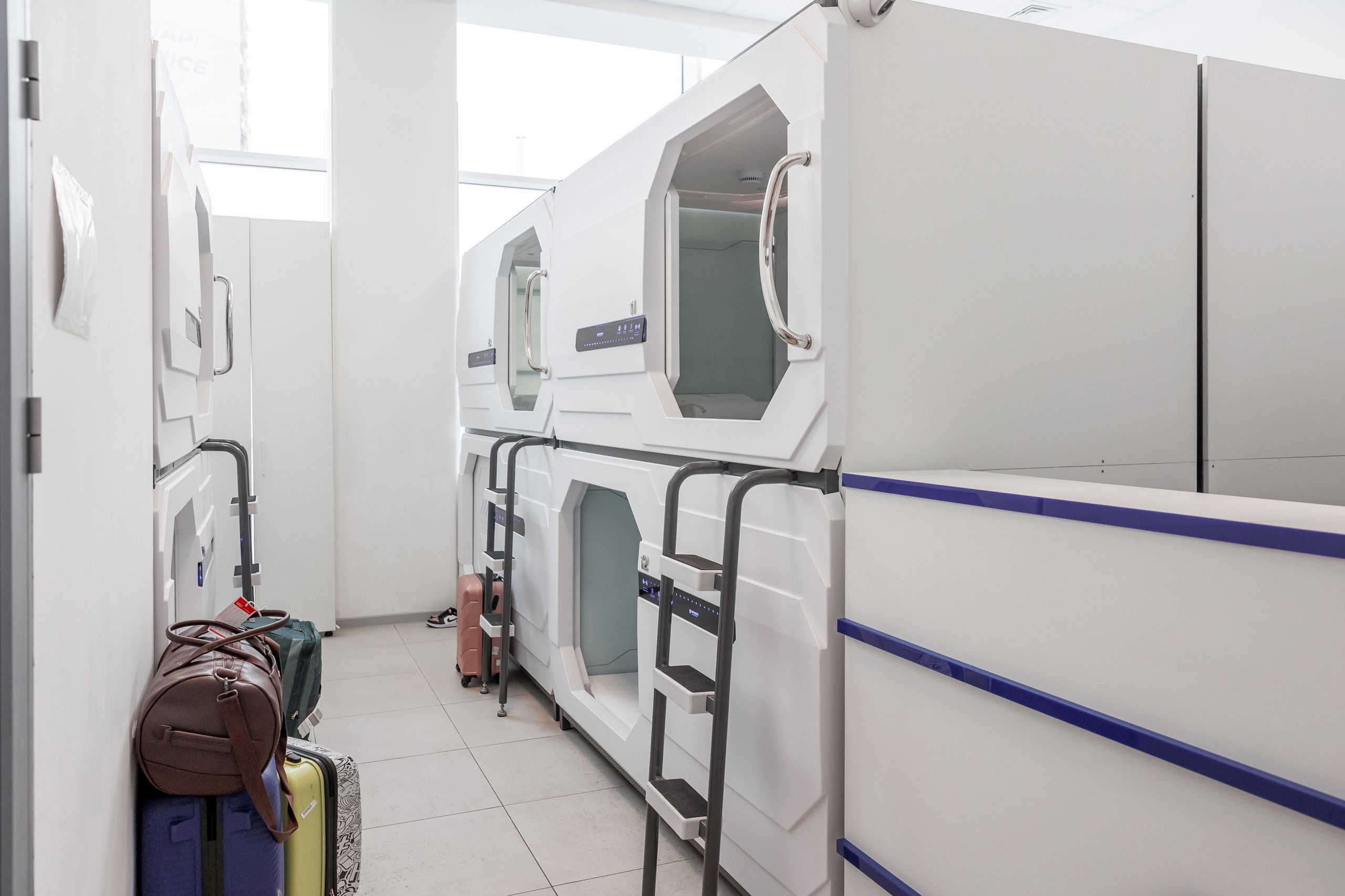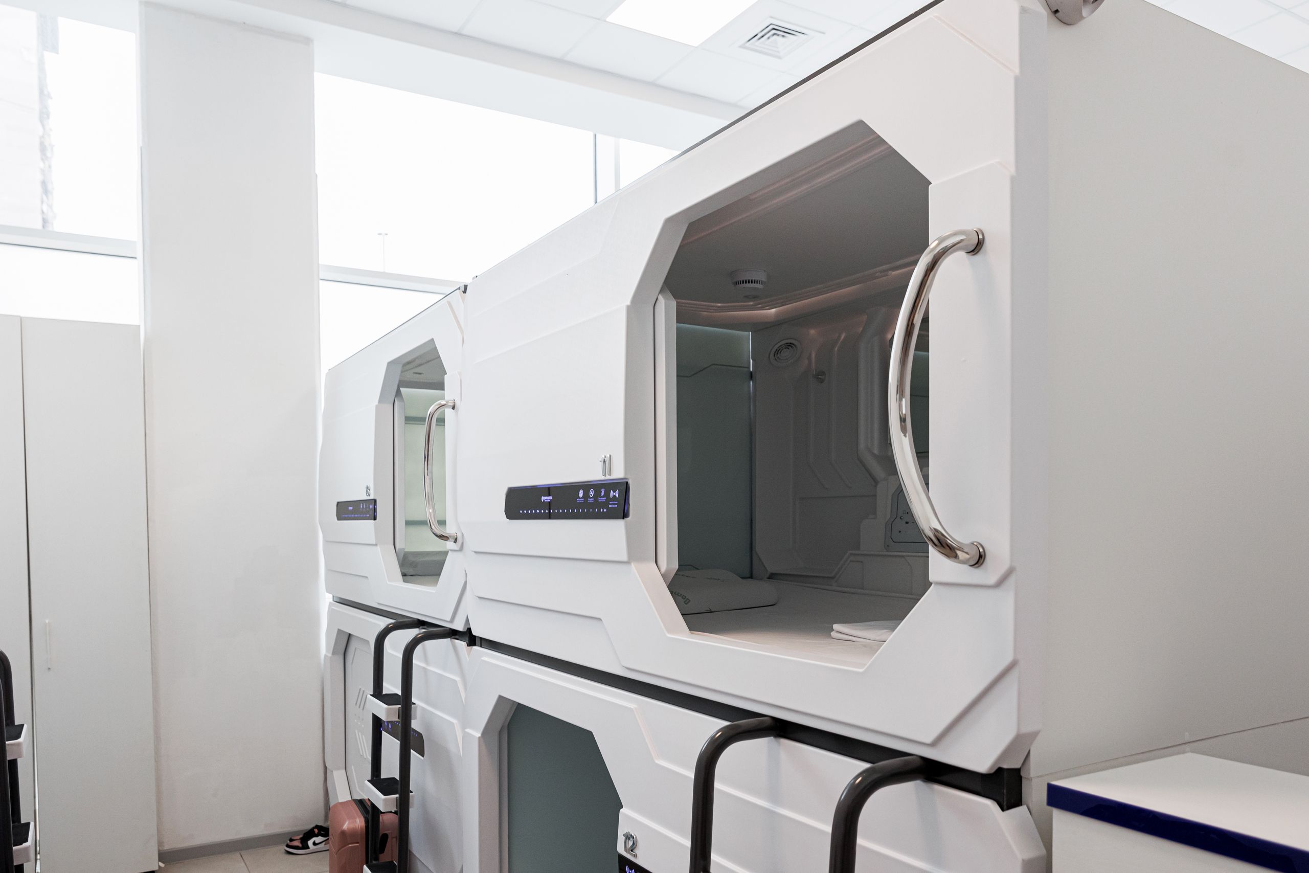 Хотите отдохнуть между рейсами? Capsule Hotel предлагает уютное пространство с комфортной кроватью, Wi-Fi и отдельной кабиной в спокойной обстановке